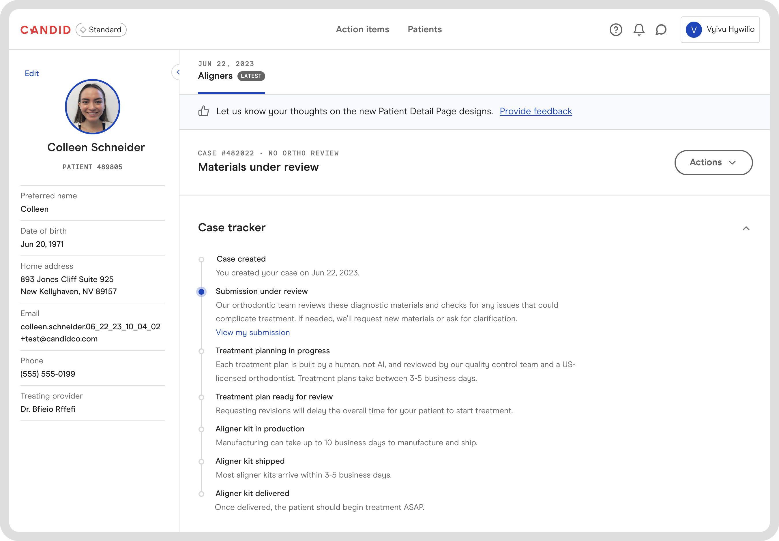 Following the submission of a new case, you'll now see a tracker when viewing the patient detail page. This will help bring more visibility into the status of your case between creation and start of treatment.