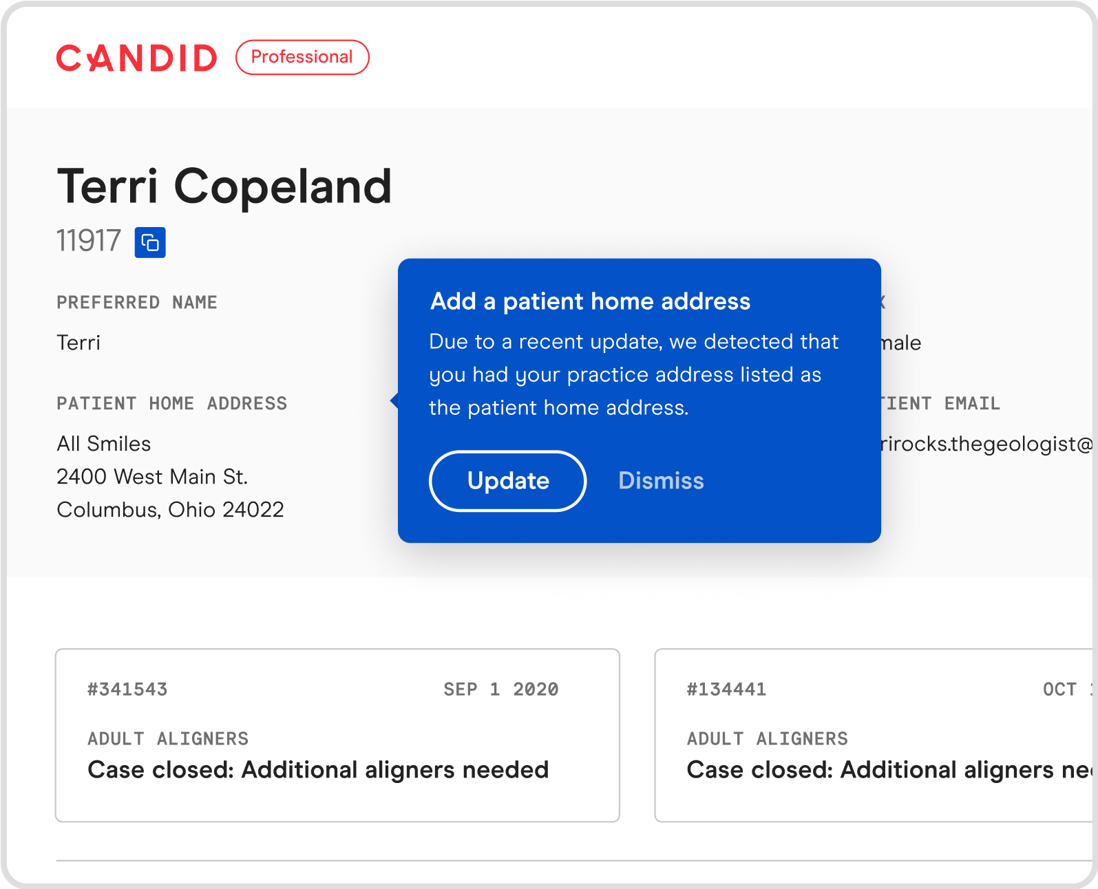 Alerts - We've put guardrails in place to catch when practice addresses are being inputted mistakenly as a patient addresses and prompt the information to be updated.