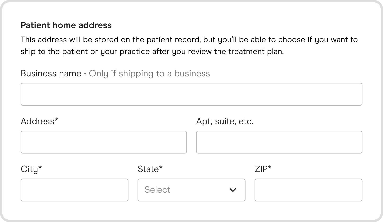 Shipping location selection - In the treatment plan approval card, you will now be able to select what location you would like your patient's order to go to: