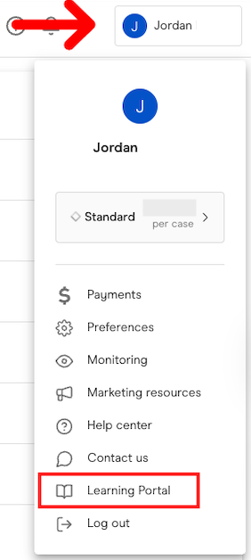 Log in to your CandidPro portal, click your profile name in the top-right corner, and select Learning Portal.